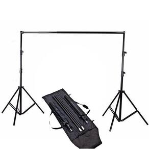 Kit para suporte de fundos infinitos, prático e de fácil montagem. Acompanha bolsa para transporte e é composto por 2 tripés e uma barra (composta por 4 partes interconectáveis) com aproximadamente 3 m de comprimento.CaracterísticasIdeal para fundos infinitosExcelente qualidadeLeve e de fácil transporteEspecificaçõesComprimento das barras: 75cm cadaAltura máxima dos tripés: 3mTubos de diâmetros 25/22/19/16mmItens Inclusos no KIT4 barras de ferro interconectáveis de 75cm2 tripés 3mBolsa para transporte