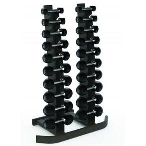 Suporte para Halteres Sextavado. Produzido em ferro e com acabamento em alumínio, o suporte para halteres é elegante e resistente, protegendo e dando durabilidade para os seus halteres. A base é cromada com espaço para jogo de 1 a 10kg. Não acompanha os halteres sextavados.