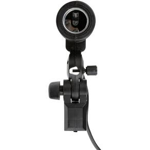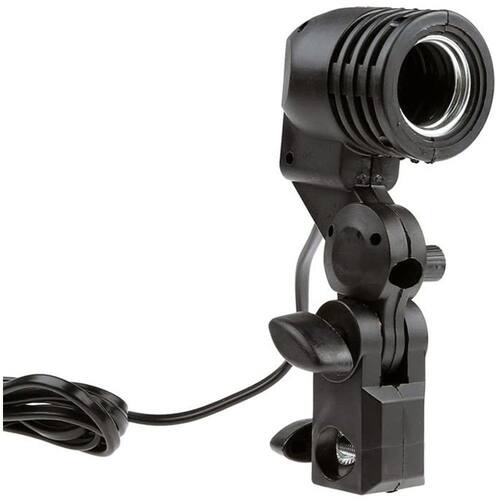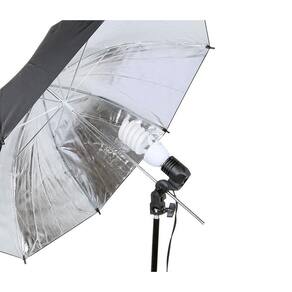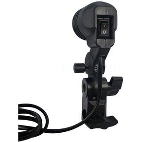 - Suporte para sombrinha com soquete padrão E27 para lâmpadas (este é o padrão mais comum no Brasil). - Tem orifício com trava para o uso de sombrinhas refletoras ou translúcidas - Regulagem do ângulo do suporte com travamento - Compatível com lâmpadas de 110V, 220V e 240V. - Base com travamento em espigão de 5/8”