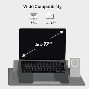 - Modo duplo 2 em 1: alterne instantaneamente entre um suporte robusto para laptop e uma mesa de colo confortável. A almofada magnética funciona como um apoio de pulso ou almofada labial, oferecendo flexibilidade para mesas, camas ou sofás.