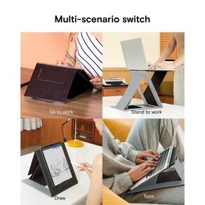 MOFT Suporte dobrável para laptop, mesa de colo portátil e mini para computador, mesa de laptop para viagens e escritório em casa, design ergonômico com ângulos de visão ajustáveis, mesa de - Tamanho Magzine. Suas dimensões são 24 x 28 x 1,3 cm, por isso pode ser facilmente armazenado em uma estante sem ser notado ou em uma bolsa antes de sair. - [Uma estação de trabalho em pé] A mesa oferece uma altura natural de 25 cm para elevar seu laptop, permitindo que você trabalhe com a palma da mão apoiada no laptop e na tela ao nível dos olhos. - [Modos versáteis] Existem quatro modos nos modos sentado, incluindo 25°, 35°, 45° e 60° para todos os tipos de necessidades quando você se senta à sua mesa, seja digitando confortavelmente, trabalhando com periféricos ou navegando. - [Rocky-Steady] Sua estrutura Z exclusiva e suporte inferior triangular garantem sua estabilidade e uso pesado. Pode suportar até 10 kg. - Materiais premium: é construído com PU personalizado e fibra de vidro rígida, tornando-o resistente o suficiente para o seu uso diário e confortável ao toque.