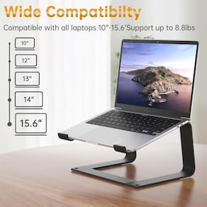 Suporte para laptop - ?Ampla compatibilidade? Este suporte para laptop é bem compatível com todos os laptops de 10 a 16 polegadas, como MacBook 30.5 cm/ 33.0 cm, MacBook Air 33.0 cm, MacBook Pro 33.0 cm / 16 polegadas (2020/2019/2018/2017/2016), Microsoft Surface, ThinkPad, Dell, HQ P, Chromebook e outros notebooks. - ?Resistente e confiável?O suporte para laptop é feito de liga de alumínio, resistente o suficiente para suportar até 5 kg de peso. As almofadas de borracha macia são projetadas para proteger seu laptop de arranhões ou escorregões - ?Destacável e portátil? O suporte para laptop é compacto, leve e fácil de instalar ou desmontar. Você pode desmontá-lo e carregá-lo com você no caminho para a biblioteca. - Dissipação de calor: este suporte de laptop permite fluxo de ar livre por baixo, o que ajuda a dissipar o calor do seu laptop. Além disso, o corpo de liga de alumínio ajuda a absorver e difundir o calor. - ?Design ergonômico? Este suporte para laptop pode ajudar a aliviar a dor no pescoço e ombro elevando seu laptop ao nível dos olhos.