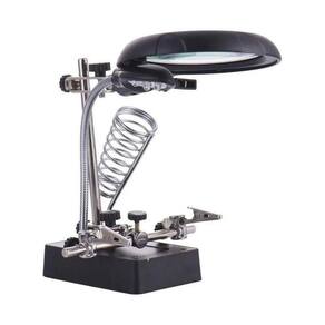 Suporte com lupa de mesa e luz LED para manutenção e reparo de placas de celular e smartphone. Possui 5 luzes LED com posição ajustável, ângulos ajustáveis, ampliação de até 10x e suporte para solda. Base com chapa de aço para maior estabilidade. Alimentação via 3 pilhas AA (não inclusas) ou fonte AC bivolt inclusa.Vendido e entregue por Olist Top