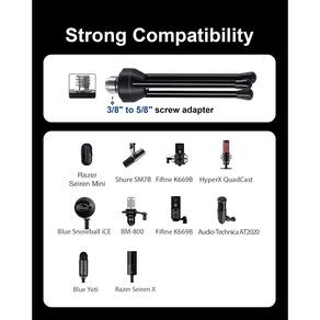 Descrição: SUNNTOK é uma empresa especializada na produção de acessórios para microfone e microfones. Nosso suporte de microfone de mesa de tripé possui estrutura de ferro e um suporte de clipe de microfone, que pode ser muito estável na mesa e não rolará facilmente, mesmo sob a ação de força externa. Sua natureza ajustável significa que você pode posicionar o suporte em uma variedade de posições. E é fácil de transportar devido ao seu design compacto e leve. Ao escolher nosso suporte de mesa profissional para microfone, você gastará menos tempo editando áudio e mais tempo gravando. - [Estrutura estável]: devido ao material de ferro de alta qualidade e ao design do tripé triangular na base, o centro de gravidade cai com o uso, pode ser muito estável na mesa e não rolará facilmente, mesmo sob a ação de força externa. Sua natureza ajustável significa que você pode posicionar o suporte em uma variedade de posições. - [Forte compatibilidade]: com o adaptador de tela de 3/20.3 cm a 5/20.3 cm, o suporte de microfone também é compatível com Blue Yeti, Snowball, Shure SM7B, Shure MV7, Rode PodMic. E o suporte universal de clipe de microfone com função antiderrapante e fixa para todos os microfones de mão, com pés antiderrapantes e redutores de vibração com uma embreagem confiável. - [Suporte de microfone versátil]: este é um suporte de microfone profissional versátil para aplicação de desktop, adequado para casa, canto, screencasts, estúdio, podcasts, chats de vídeo, reuniões, palestras, transmissões, entrevistas ao vivo, palco e outros, adequado para ser transportado para qualquer lugar. - [Fácil de usar]: o pacote inclui duas partes, suporte de tripé de microfone e suporte de clipe. Rosca interna do clipe de microfone e adaptador padrão de 0,9 a 1,5 cm que é anexado ao clipe de microfone para que seja facilmente aparafusado. Observação: certifique-se de que uma das três pernas esteja na frente do microfone, caso contrário, ele cairá.