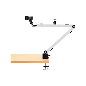O Suporte Para Microfone Flexível Streamplify Mount Arm é uma solução de montagem versátil e conveniente para câmeras, luzes e outros dispositivos. Com seu design único de trilho de montagem de sapato frio, permite que você deslize e fixe seus dispositivos em qualquer lugar no Mount Arm, oferecendo praticidade e segurança. A flexibilidade é uma característica essencial deste suporte. Com um design totalmente ajustável, ele permite um giro de 360 e ajuste de ângulo de 210, fornecendo máxima liberdade para posicionar seus dispositivos no ponto ideal para conforto e ergonomia. O Mount Arm possui uma extensão de até 75cm tanto na vertical quanto na horizontal, permitindo que você cubra uma maior distância ou recue para liberar espaço. Sua construção robusta suporta uma carga máxima de 2,5 kg, garantindo durabilidade e estabilidade durante o uso. Além disso, o Mount Arm possui 4 clipes de gerenciamento de cabos ajustáveis, o que ajuda a manter seus cabos organizados. Com instalação fácil na lateral, ele não ocupa espaço no ambiente de trabalho, sendo fixado através de uma braçadeira de mesa com abertura máxima de 65 mm. O suporte também é compatível com smartphones, suportando dispositivos de até 100 mm de largura. E, caso você esteja preocupado com a compatibilidade do seu dispositivo, o Mount Arm vem com adaptadores de parafuso adicionais para suportar todos os dispositivos de 5/8, 3/8 e 1/4. Assim, você terá a certeza de poder montar o seu dispositivo com facilidade. Dimensões:75 cm de extensão Cor:Branco Material:Estrutura de aço com revestimento plástico ABS Pesquisa:suporte para microfone|suporte|mount arm|streamplify - Alcance máximo: 75 centímetros - Carga máxima de peso: 2,5 Kg - Espessura máxima da mesa: 65 milímetros - Rosca: 3/8 - Adaptador de parafuso: 5/8 e 1/4 - Gerenciamento de cabos: Sim - Acessórios: Clipe de microfone universal, adaptador de cabeça de esfera, suporte para smartphone e chave hexadecimal