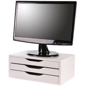 Conteúdo, dimensões e peso da embalagem Suporte para monitor com 3 gavetas em MDF na cor Branco 39x16x26cm