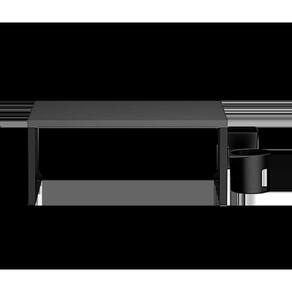 A ampla arrumação sob o suporte é ideal para objectos essenciais, decorações, livros e outros itens para otimizar o espaço e aumentar a eficiência do trabalho.