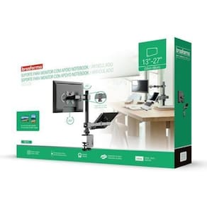 O suporte de monitor BM715 é ideal fixação de monitores de 13 a 27 polegadas e notebook/laptop de até 4kg. Possui giro de 360 da base o que permite deixar a tela em modo retrato ou paisagem e ajuste de altura. Permite fácil engate e acompanha organizador de cabos que facilitam a instalação. Pode ser fixado por morsa onde não necessita furar a mesa ou instalado direto sobre a mesa. Atende mesas de 10 a 85mm. Fabricado em aço carbono e plástico Marca: Não Informado
