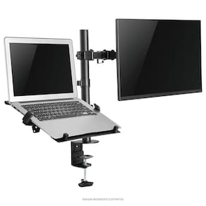 Suporte para monitor e notebook com articulação dupla Suporte para monitor e notebook com articulação dupla - plmsmn1a Design de placa vesa destacável: facilita a instalação Gerenciamento de cabos: oculta de maneira elegante todos os cabos conectados aos monitores Placa vesa rotativa a 360 °: para mais experiência de visualização Duas opções de montagem: braçadeira de mesa e ilhó estão incluídos