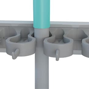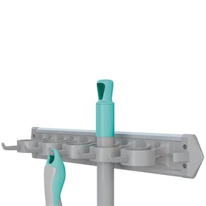 O suporte organizador multiuso é ideal para mops, cabos, rodos e vassouras. Com ele, sua área de serviço fica organizada e com mais espaço livre para circulação. Além de comportar até 6 cabos o suporte ainda conta com 5 ganchos que podem ser utilizados para pendurar diversos objetos, deixando-os sempre a mão.