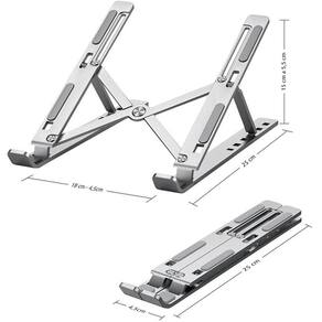 - Suporte para Notebook e Macbook em alumínio - 10 à 17 Polegadas. - Eleve a altura do seu notebook para posição de visualização confortável, evitando dor no ombro e na coluna. - Suporte com diversas opções de altura, diversificando as possibilidades de uso. - Material de alta qualidade, liga de alumínio, resistente e muito bem acabado. - Design com silicone nos pontos de apoio, permitindo que se coloque a máquina de forma estável evitando que acidentalmente balance, arranhe ou se movimente.