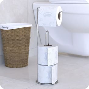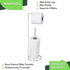 O porta papel higiênico de chão é prático, dispensa o uso de ferramentas para instalar, evitando transtornos, furos nas paredes e sujeiras.