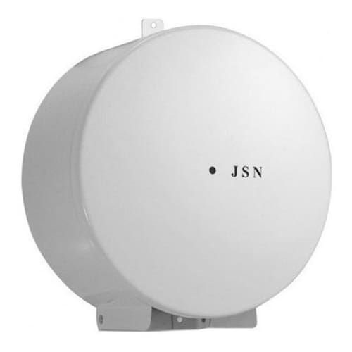 Produzido em chapa de aço carbono 1020 e acabamento pintura eletrostática branca epóxi . O sistema de fechamento é feito através de fechadura central tipo Allen, que mantém o produto trancado, evitando, assim o furto do papel, bem como a abertura indevida da tampa do suporte, possui visor para controle da reposição do papel.