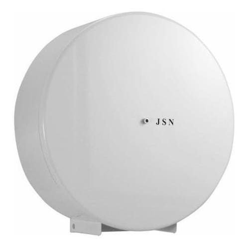 Produzido em chapa de aço carbono 1020 e acabamento pintura eletrostática branca epóxi . O sistema de fechamento é feito através de fechadura central tipo allen, que mantém o produto trancado, evitando, assim o furto do papel, bem como a abertura indevida da tampa do suporte, possui visor para controle da reposição do papel.