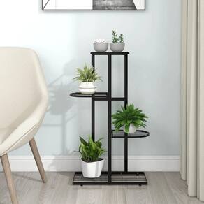 Este suporte para plantas de metal preto de 4 camadas é uma adição elegante e prática, projetada para aprimorar qualquer ambiente ou jardim. Com sua aparência minimalista e construção sólida, funciona maravilhosamente como uma exibição para suas plantas favoritas ou outras peças decorativas, trazendo facilmente um toque da natureza