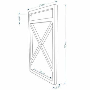 Especificações técnicas Marca: Omega Suportes Modelo: suporte 20cm x Material: Plástico Maciço Dimensões: Altura externa 37cm Altura Interna 34cm, Largura Externa 23cm, largura interna 20cm Peso Suportado 30 kg Sistema de montagem: fixação em parede