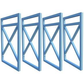 atenção os suportes enviados são os que não enferruja e não descasca pintura. Local de fixação: parede não acompanha as madeiras. Suporte: 4 peças - altura total = 37cm - largura interna = 20cm - espessura do tubo maciço em plástico = 15x15mm - distância entre madeiras = 25cm - cor = azul - peso suportado = 60kg - indicado utilizar um suporte a cada 60cm de distancia