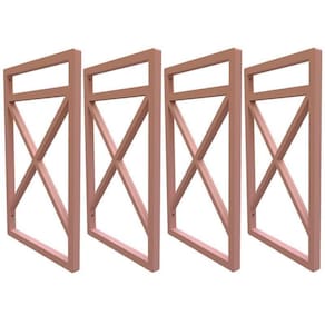 atenção os suportes enviados são os que não enferruja e não descasca pintura. Local de fixação: parede não acompanha as madeiras. Suporte: 4 peças - altura total = 37cm - largura interna = 20cm - espessura do tubo maciço em plástico = 15x15mm - distância entre madeiras = 25cm - cor = rose gold - peso suportado = 60kg - indicado utilizar um suporte a cada 60cm de distancia