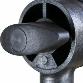 Tripé ajustável com sapatas em material macio para absorver impacto.
