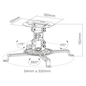 O suporte para projetor PRO100 ELG é indicado para instalação em tetos de alvenaria ou vigas de madeira e aplicável com projetores até 13,5Kg que possuam 3 ou 4 pontos de fixação roscados. O afastamento entre os pontos roscados presentes no projetor deve ser entre 54 e 320mm diâmetro para alcançar as hastes do suporte. A base é fixa com distância do teto até o projetor de 15cm. Ajuste preciso da imagem projetada. Possui várias opções de ajustes, como rotação até 360°, ajuste de ângulo vertical e horizontal de +/-15° e ajuste para teto inclinado. Produzido em aço carbono com tratamento anticorrosão e pintura epóxi eletrostática de alta resistência, aliando durabilidade, segurança e excelente acabamento. Garantia de 03 anos. Ean: 7898378702328