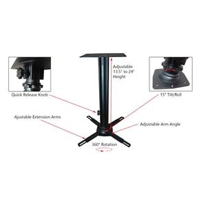 O suporte universal para projetor inclui quatro braços extensíveis e giratórios do tipo aranha para uma capacidade de montagem totalmente universal. Posicione facilmente seu projetor com o botão de ajuste de inclinação sem ferramentas e o ajuste da extensão vertical sem ferramentas e com o parafuso de aperto manual. O suporte universal para projetor permite o posicionamento estável e seguro de qualquer projetor de 13,5 polegadas a 24". A rotação total de 360 graus e o ajuste de inclinação de 15 graus permitem o alinhamento perfeito do seu projetor.