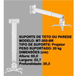 NOME: SUPORTE DE TETO OU PAREDE PARA PROJETOR – BRANCO