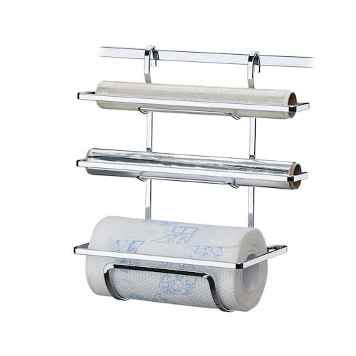 Com os locais determinados, os rolos de papel toalha, alumínio e PVC estarão sempre à mão na hora de preparar os alimentos. O Suporte também deixa mais espaço livre da bancada pois fica pendurado na barra fixada na parede.Pode ser usado em barras tubulares ou de perfil chato (Piatina).Além do tradicional tratamento superficial da Future - onde são aplicadas até 4 camadas de metal - os produtos são revestidos com uma camada extra do protetivo especial Rust Free, garantindo cores vivas e brilhantes, além de maior resistência contra ferrugem.MedidasProfundidade: 17cmLargura: 33cmAltura: 35cmPeso: 0,795 kgEspecificaçõesMatéria-prima: Aço CarbonoCor/Acabamento: CromadoLinha: Cucina PerfettaDicas de UsoPara limpeza periódica recomenda-se o uso de um pano macio, água e sabão neutro.Nunca utilize materiais abrasivos, lã de aço, esponjas ásperas, solventes ou produtos químicos corrosivos (cloro, água sanitária).Itens Inclusos1 Suporte de ParedeAtençãoBarra não inclusa.
