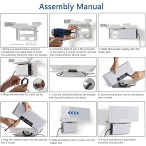 PUG258Y Suporte de roteador Starlink Gen 3: Kit de montagem de roteador StarLink V3 2 em 1 e suporte de fonte de alimentação, kit de Internet Star Link Satellite Gen 3 e V3, economia de espaço - - Design que economiza espaço: nosso design integrado combina inteligentemente o roteador Starlink Gen 3 e sua fonte de alimentação em uma unidade simplificada. Esta configuração compacta minimiza a bagunça, liberando espaço de trabalho valioso — uma escolha inteligente para quem deseja aprimorar seus acessórios Starlink. - Durabilidade: Feito de plástico ABS premium, nosso suporte Starlink Gen 3 é resistente e resistente. É resistente a impactos e arranhões, garantindo que sua configuração permaneça forte e tenha uma ótima aparência por muitos anos. - Fácil instalação: projetado para simplicidade, nosso suporte permite a montagem e desmontagem rápidas de seus acessórios Starlink Gen 3 - sem necessidade de etapas complicadas! Você estará pronto e funcionando rapidamente. - Ajuste perfeito: projetado especificamente para o roteador Starlink Gen 3 e fonte de alimentação, nosso suporte garante um ajuste confortável que não é apenas visualmente atraente, mas também oferece proteção essencial contra danos acidentais. - Otimização de sinal: posicione seu roteador Starlink Gen 3 para ter sucesso! Nosso suporte coloca o roteador no ângulo ideal, melhorando a cobertura do sinal e o desempenho para uma experiência de internet superior