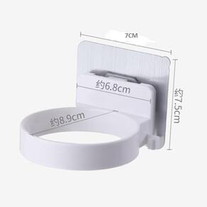 - Design funcional 2 em 1: suporte circular para acomodar o secador ou escova elétrica e gancho integrado para pendurar toalhas, esponjas ou acessórios.