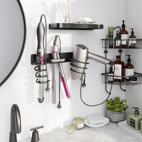- 1, Este organizador de banheiro - o suporte para secador de cabelo é compatível com a maioria dos tipos e tamanhos de secadores de cabelo