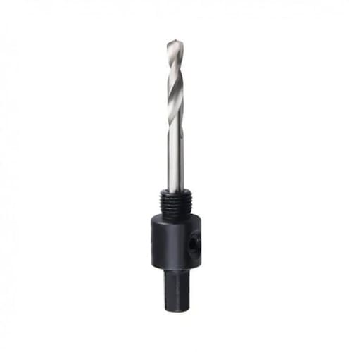 O parafuso no corpo facilita a troca da broca piloto. Utilizada juntamente com serras copo e brocas piloto em trabalhos de perfuração em aço, com pinos de travamento.