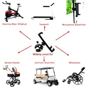 FoscoDHYSTAR Suporte universal para tablet compatível com a maioria dos tablets/celulares, design prático, perfeito para bicicletas giratórias, mastro de microfone de música, esteiras, elípticas, bicicletas giratórias estacionárias, treinadores de bicicleta de ciclismo interno, bateria, cadeiras de rodas, carrinho de golfe, carrinho de golfe, capacete de barco, carrinho de passeio e muito mais. Enquanto você o usa, fácil acesso à tela do seu dispositivo portátil e à maioria das teclas de função, você pode ouvir música, assistir a filmes, aplicativos esportivos e muito mais, libere suas mãos e relaxar, ele trará uma boa experiência.