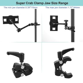 Mippko Suporte de tablet para microfone e suporte de música para microfone, montagem de liga de alumínio ajustável com rotação de 360° - ?Braço mágico articulado?: O comprimento é de 25,5 cm, liga de alumínio e material de aço inoxidável antiferrugem, resistente, durável, resistente à corrosão e resistente ao desgaste, capacidade máxima de carga de 1 kg, o braço de suporte para iPad está disponível para uso interno e externo. - ?Super braçadeira de caranguejo?: estrutura de material de liga de alumínio, sólido, antiferrugem e anticorrosão, com orifício de roscas de 0,65 cm a 20 e 3/20.3 cm, mandíbula equipada com 2 capas de borracha antiderrapantes, maior atrito, antiderrapante, redução de arranhões, prenda firmemente, mais estável e seguro. - ?Flexível ajustável?: O braço do suporte do tablet tem 2 juntas esféricas, permitindo que ambas as juntas esféricas tenham liberdade de inclinação de 90° ao girar o botão da junta, enquanto o braço pode ser dobrado e esticado, também o botão de articulação de torção para travar ambas as juntas esféricas e suporte de bola de aço inoxidável braçadeira de tablet com rotação de 360° flexível, é fácil para o cliente ajustar o ângulo do tablet. - ?Mandíbula ajustável?: Suporte para iPad braçadeira de caranguejo ajustável, diâmetro máximo de 1,77 polegadas / 4,5 cm, diâmetro mínimo de 0,39 polegadas / 1 cm, especialmente projetado para prender a haste/vara/mastro/prateleira/tubo/guidão/mesa/cadeira/tripé, etc. perfeito para suporte de música iPad. - ?Braçadeira para tablet?: o grampo de tablet de material ABS tem fivela de 1,2 m com almofada de borracha antiderrapante embutida, segura dispositivos firmemente, a espessura da capa do tablet é inferior a 0,59 polegadas/1,5 cm e é compatível com dispositivos de 4,7 ~ 12,9 polegadas: e-Reader, iPad Air 2/3/4/5/6, iPad Pro 9,8 cm. 3/10. 5/11, iPad2019/2020/2021, Google Nexus 7/8/9/10/11, LG G Pads/7.0/8.0/ 8.3, iPhone /15/ 14 / 13 /12 /11 / 8 /SE/XR/Mini.