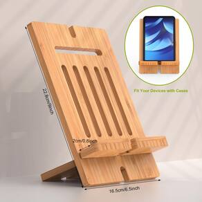 - Bambu com design elegante e bonito: o suporte para tablet é feito de bambu com design bonito, exclusivo e patenteado elegante, durável para proteger melhor seu dispositivo inteligente de arranhões