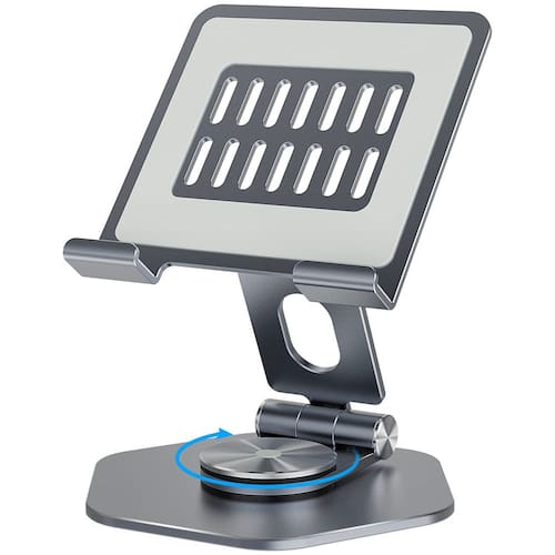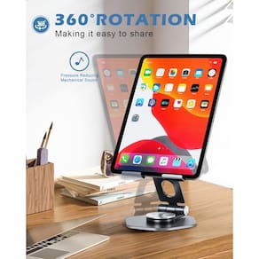 Suporte de tablet para mesa, suporte giratório para iPad com base giratória 360, suporte de mesa dobrável de alumínio.
