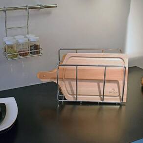 Suporte para Tábuas de Carne Corte Organizador Aramado para Cozinha Cromado Masutti.