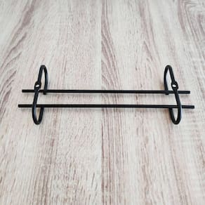 Garantia: 3 meses / Peso: 128g / Cor: preto fosco / Ref: 83067; Dimensões: 25cm (C) x 9,5cm (L) x 4cm (A); Distância entre os parafusos: 18,5cm (C); Distância das hastes: 2cm (L); Abertura para base da taça: 8cm (L); Não acompanha parafusos e buchas. Cuidados: Não lavar com materiais abrasivos.