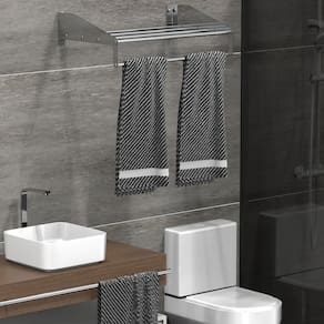 ESPECIFICAÇÕES TÉCNICAS Material das Laterais: Aço inoxMaterial dos Tubos: Alumínio Acabamento: Polido Alto Brilho Dimensões: Altura 8,5 x Largura 40,5 x Profundidade 25 Peso: 590g Fixação: Parafusos e buchas inclusos Uso indicado: Residencial e comercial (hotéis, pousadas, etc.)