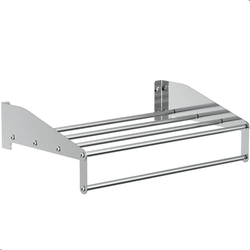 ESPECIFICAÇÕES TÉCNICAS Material das Laterais: Aço inox Material dos Tubos: Alumínio Acabamento: Polido Alto Brilho Dimensões: Altura 8,5 x Largura 40,5 x Profundidade 25 Peso: 590g Fixação: Parafusos e buchas inclusos Uso indicado: Residencial e comercial hotéis, pousadas, etc.