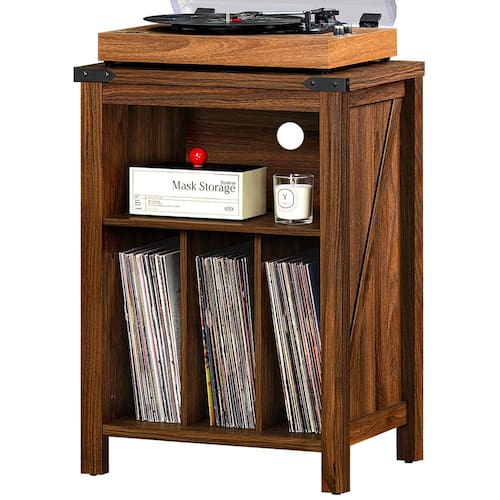 Suporte para toca-discos Joaxswe Rustic Brown com armazenamento em vinil