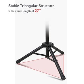 — capacidade máxima de peso de 130 libras; altura ajustável (2 a 4,5 pés); pernas de tripé robustas, expansíveis e longas fornecem estabilidade em qualquer ambiente