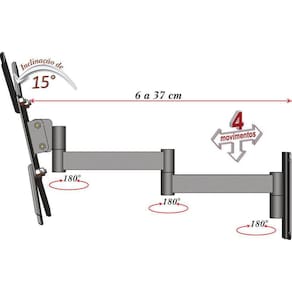 Suporte inclinável para todos os tipos de telas old, 4k,3d, led, lcd ou plasma de 10" à 48", com 4 movimentos laterais e inclinação frontal de 0º ou 15º.Compatibilidade: tv's led, ldc, plasma, 3d, 4k, oled e smart tv de 10" à 48"Material: aço carbono e pintura eletrostática com aplicação de fosfato maior durabilidade Cor: branco;Garantia: 5 anos, conforme normas do fabricante;Fabricante: multiforma;Carga máxima: 30 kilos;Dimensões do produto montado:Distância da parede: 6 cm à 37 cmArticulado: sim, 4 movimentos de até 180º;Inclinação: frontal de 0º ou 15º;Furação: vesa=mm : 75 x 75; 100 x 100; 200 x 100 ou 200 x 200Itens inclusos: 1 - suporte montado; 2 - braço extensor; 1 - conjunto de parafusos; manual com instruções de montagem e garantia impressos na embalagem;Parafusos inclusos para fixação da tv no suporte: m4x16; m6x20 e m8x25, medidas diferentes devem ser adquiridas separadamente.Diferenciais: seu sistema modula-fácil é inovador e facilita a montagem mesmo para uma só pessoa, além de reduzir o número de ferramentas necessárias.Observações: imagens meramente ilustrativas. Verifique se a superfície de instalação apresenta resistência suficiente para uma instalação segura;Fique atento a carga máxima indicado para o suporte;Aconselhamos que a instalação seja realizada por um profissional da área;