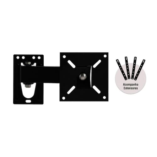 Suporte Para Tv Articulado 10 A 56" Bra3.0 - Brasforma Suporte Para TV Articulado 10 A 56 BRA3.0 - Brasforma - Características Gerais do Produto: - Marca: Brasforma - Cor: Preto - Visão: Frontal, lateal e superior - Pontos de Fixação: 4 Pontos - Indicação: TVs LCD e LED - Carga Suportada: 30Kg - Parafusos: M6X20mm, M8X25mm e Parafusos e Buchas para fixação - Tamanhos Suportados: 10 - 56 (25cm - 142cm) - Distância da parede: (Mín. X Máx.): 5,8cm-20,5cm - Composição: Aço cabono - Garantia: 5 Anos (Fabricante) Acompanha o produto: - 01 - Suporte Para TV Articulado 10 A 56 BRA3.0 - Brasforma - 01 - Manual de instruções - Peças auxiliares para fixação Garantia: - 5 Anos (Fabricante)