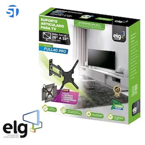 Informações técnicas MarcaELG ReferênciaFULL20 ModeloFULL20 Tipo Articulado Polegadas 15" a 42" Peso suportado até 30 kg Cor Preto Ângulo de inclinação Mais ou menos de 5º a 12º (limitado ao tamanho da TV) Giratório Mais ou menos 90° (limitado ao tamanho da TV) Distância da Parede Mínima6cm Máxima19cm Material Aço carbono Peso aproximado Peso do produto1,09kg Dimensões do produto Largura25cm Altura17cm Profundidade6cm SAC do fornecedor (E-mail) suporte@elg.com.br