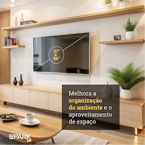Benefícios: Instalação simples com todos os acessórios inclusos; Acabamento reforçado e pintura anticorrosiva; Melhora a organização do ambiente e o aproveitamento de espaço; Permite ajustes finos no posicionamento da TV.