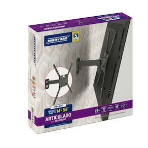 O suporte STPA-ECO de parede articulado com inclinação é com TVs de tela fina de 14 a 56. O sistema de encaixe da TV no suporte facilita e permite que a instalação seja realizada por apenas uma pessoa com facilidade, além de oferecer 3 níveis diferentes de inclinação: 0, 6 ou 15. Recuado, a TV fica 6,0 cm e pode articular até 27,0 cm da parede.