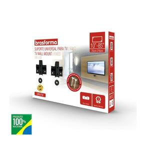 Suporte Para Tv Preto Led/lcd/plasma 10-85" Sbrub758 - Brasforma Suporte Para TV Preto LED/LCD/Plasma 10-85 SBRUB758 - Brasforma - Características Gerais do Produto: - Marca: Brasforma - Cor: Preto - Visão: Frontal - Pontos de Fixação: 2 Pontos - Indicação: TVs LCD e LED - Carga Suportada: 100Kg - Parafusos: M4X16mm, M6X20mm, M8X25mm, M8X45mm e Parafusos e Buchas para fixação - Tamanhos Suportados: 10 - 85 (25cm - 216cm) - Composição: Aço cabono - Garantia: 5 Anos (Fabricante) Acompanha o produto: - 01 - Suporte Para TV Preto LED/LCD/Plasma 10-85 SBRUB758 - Brasforma01 - Manual de instruções - Peças auxiliares para fixação Garantia: - 5 Anos (Fabricante)