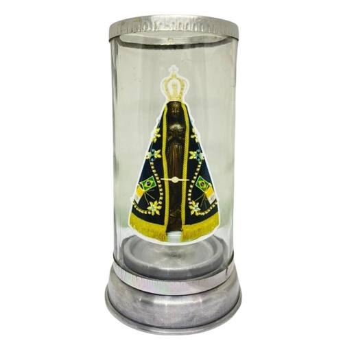 Suporte Para Vela 7 Dias 18 Cm Nossa Senhora Aparecida Vidro E Alumínio