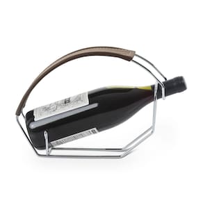Suporte Para Garrafa de Vinho em Aço com Acabamento Em Couro Firenze - Forma Utilidades