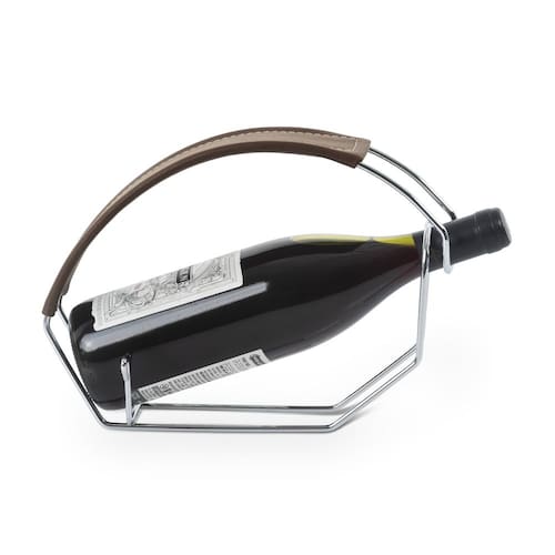 Momentos românticos pedem um bom vinho. Impressione na arte de servir com um suporte cromado com acabamento em couro, de alta qualidade e fácil limpeza.